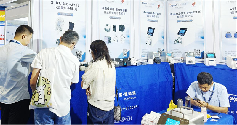 思諾流體攜眾多新品亮相展會,有智能檢測蠕動泵產品,半自動灌裝流水線,AI智能蠕動泵、灌裝系統(tǒng)蠕動泵,新研發(fā)的蠕動泵泵頭和OEM等,我們的銷售人員以專業(yè)的講解以及現(xiàn)場展示,向各位參展商講解產品亮點。