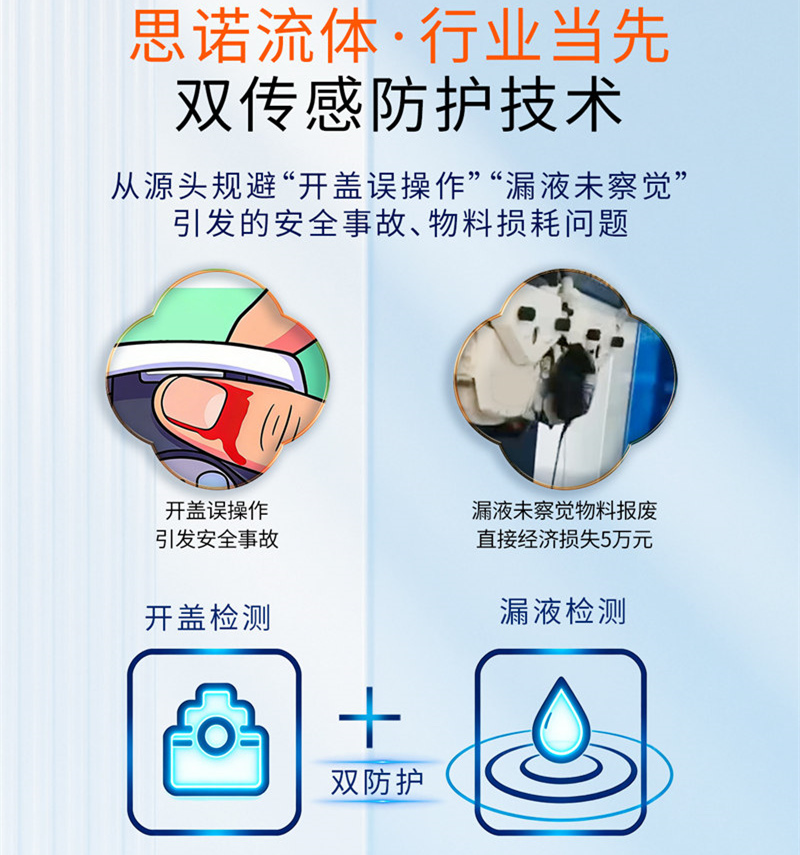 通過(guò)優(yōu)化傳感器算法和電路設(shè)計(jì),思諾流體的雙重防護(hù)系統(tǒng)實(shí)現(xiàn)了從風(fēng)險(xiǎn)發(fā)生到系統(tǒng)響應(yīng)的毫秒級(jí)快速反應(yīng)。無(wú)論是微量漏液還是意外開(kāi)蓋,設(shè)備都能在第一時(shí)間采取行動(dòng)。